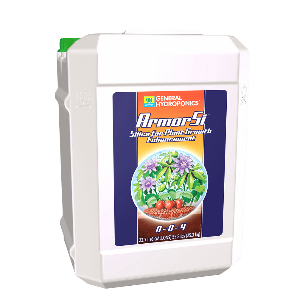 Description Armor Si is a potassium silicate supplement that delivers the benefits of plant-available silica and potassium to strengthen plants and improve stress resistance. By reinforcing cell walls and supporting robust structural and foliar development, Armor Si helps plants better withstand heat, drought and other environmental stresses while increasing yields and improving flower and fruit production. It can be used as a growth enhancer with irrigation water or in addition to regular fertilizers in hydroponics, coco coir and all types of growing media throughout the entire life cycle.