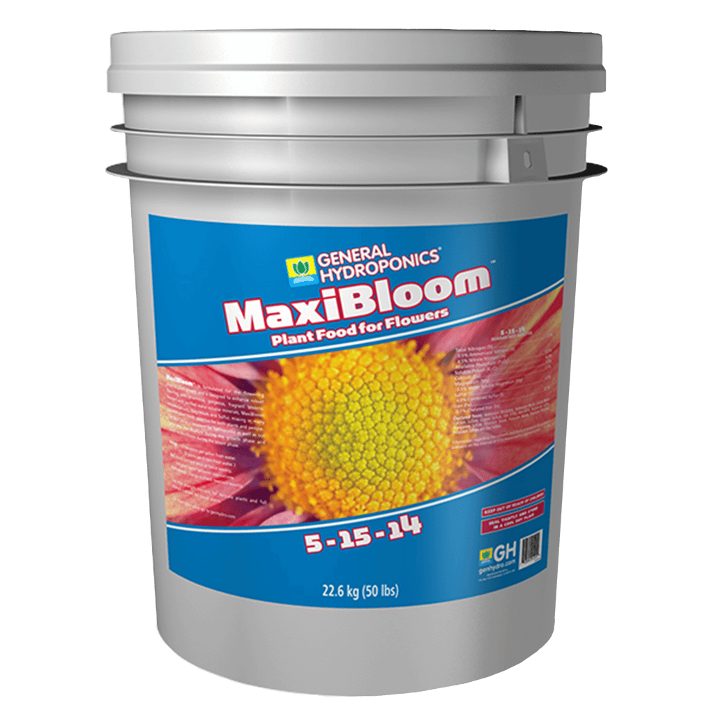 Description MaxiBloom is a powerful, stand-alone, water-soluble dry nutrient developed for the flowering and fruiting stages of fast-growing annuals and other bloom crops. Complete in primary, secondary and micronutrients and pH-buffered for consistent performance, it provides elevated phosphorus and potassium along with magnesium and sulfur to support prolific flowering, heavy fruit development and high essential oil production. MaxiBloom is ideal as a single-container bloom formula for hydroponics, coco, soilless mixes and soil where big yields and crop quality are the goal.